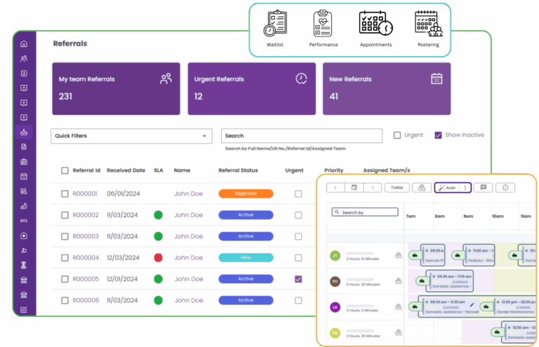 DC2Vue unifies clinical documentation, workflows, scheduling, automation, analytics, and client communications into one cohesive platform. This reduces fragmentation, eliminates double-handling, and gives organisations complete operational visibility.